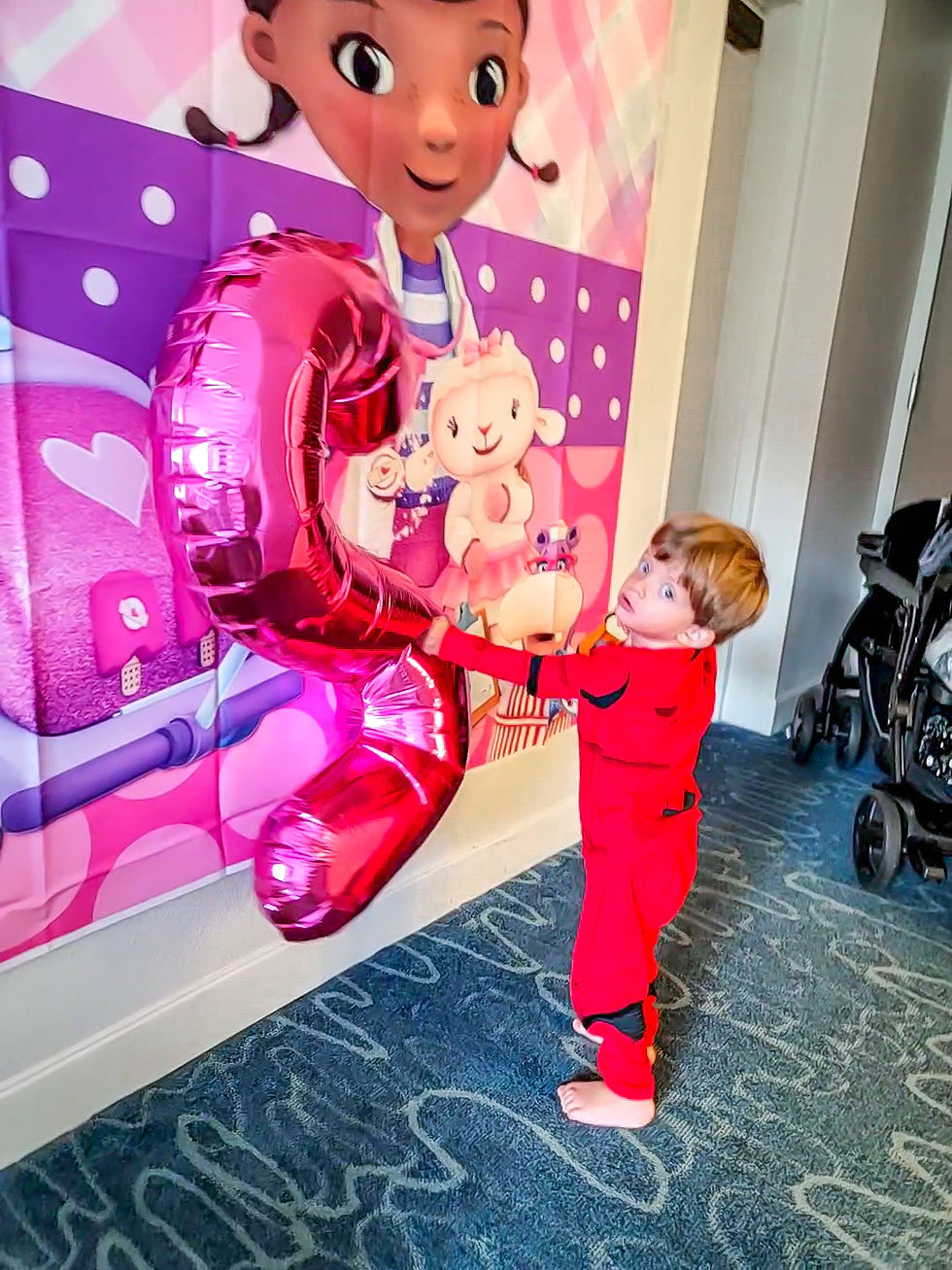 The day before Commodore's birthday in and of itself had been jam packed as we left Fort Lauderdale at 9am, got to Orlando at Noon, checked in (thanks Marriott rewards), went to the pool immediately, had lunch, took a nap, went to Epcot and then finally got the kids to bed at midnight (you read that right), so that we could decorate the room. I don't care how tired we were, there is something magical about kids waking up to a fully decorated birthday room.